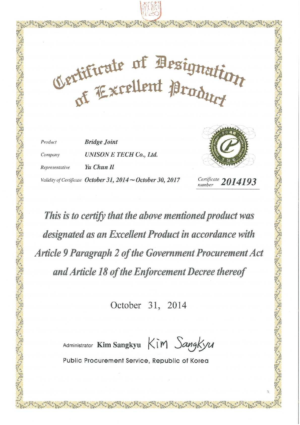 Following Government Procurement regulation 9.2.18, Unison eTech Finger type of Bridge Expansion Joints was selected with outstanding product of General Services Administration on October 31st, 2014.